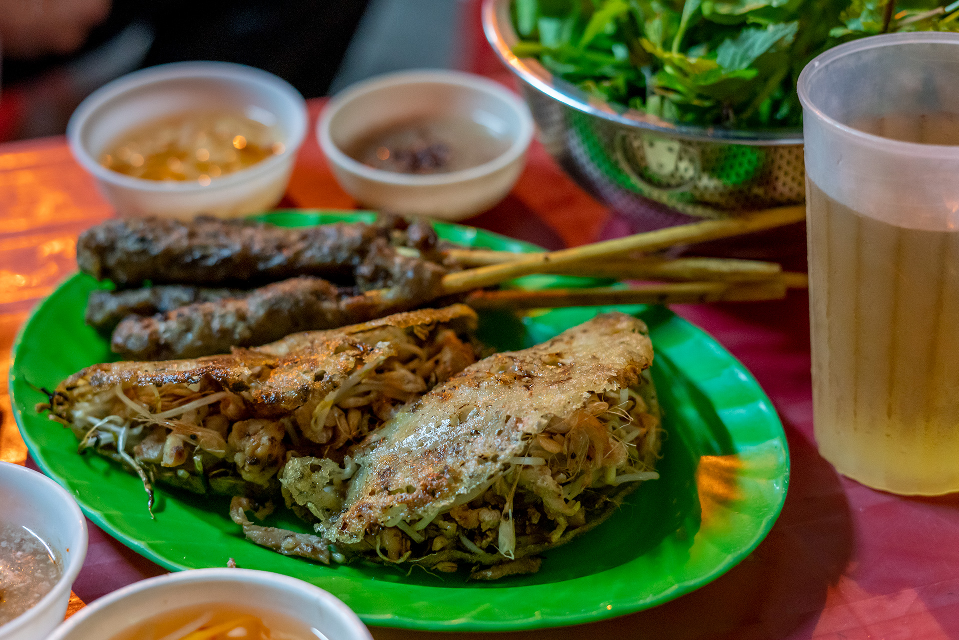 Local foods: fried spring rolls, papaya salad, Pho noodle soup, banh mi (a Vietnamese sandwich), steam rice pancakes, glutinous rice doughnuts, local ice cream, sweet soup, and fruits……